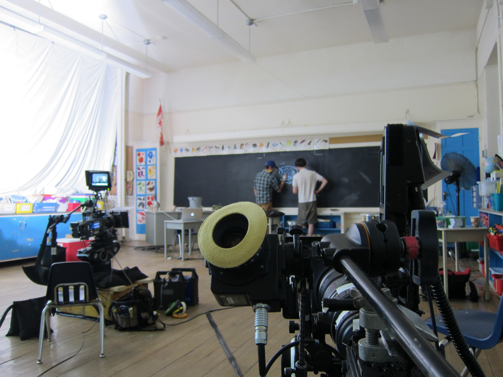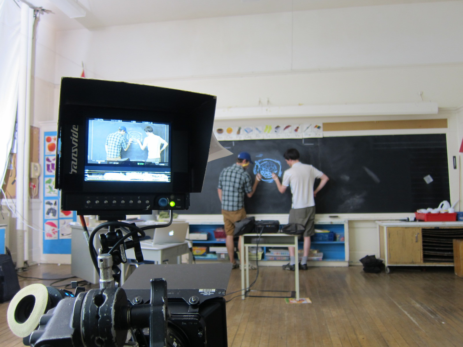 Staples paid for this ad to run in Quebec and help a breakfast club that feeds hungry kids every morning there." If you're hungry, you're not going to learn to well," is the idea. This was shot in 4K on an Alexa and directed by Jon and Tory via family-style.tv. MacLaren McCann was the agency. Ben did the storyboards and led the animation unit. Some on-set photos from the shoot. The animation was done in advance.